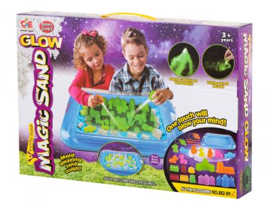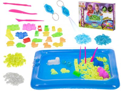 A készlet tartalmaz egy speciális zseblámpát a homok megvilágításához és egy felfújható homokozót. Ez lehetővé teszi, hogy rendet tartson a játék során.