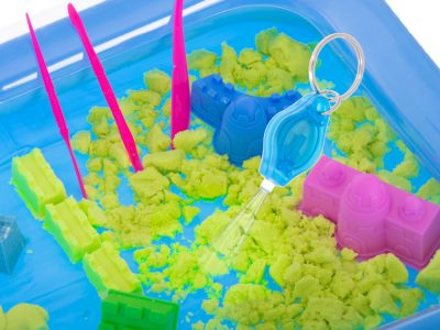 A homok lehetővé teszi saját modellek létrehozását, ami tökéletesen stimulálja a gyermek képzeletét és kreativitását. Tökéletes a gyerekek kézi készségeinek fejlesztésére.