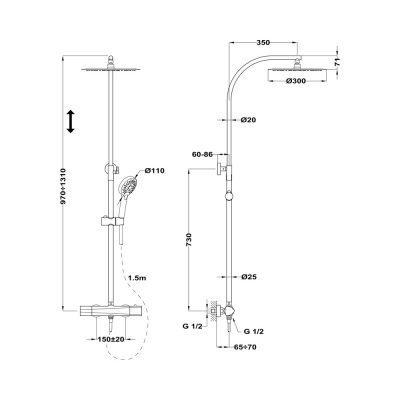 • Állítható kézizuhany tartó