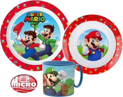• Super Mario Mushroom Kingdom étkészlet, micro műanyag szett bögrével 265 ml