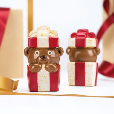 A Surprise Bear 3D csokoládé öntőforma (20SR106) egy kiváló minőségű, polikarbonátból készült eszköz, amely lehetővé teszi, hogy lenyűgöző, gömb alakú csokoládé figurákat készítsen. A forma mérete 275×175 mm, ami ideális méretet biztosít a részletgazdag és látványos csokoládé alkotásokhoz. A polikarbonát anyag garantálja a tartósságot és a könnyű használatot, mivel a csokoládé könnyedén kiemelhető a formából anélkül, hogy megsérülne. A Surprise Bear forma különleges kialakítása lehetővé teszi, hogy a csokoládé belsejébe meglepetéseket rejtsen, így tökéletes választás ünnepi alkalmakra vagy ajándékként. A forma precíz kidolgozása biztosítja, hogy minden egyes csokoládé figura részletgazdag és esztétikus legyen.