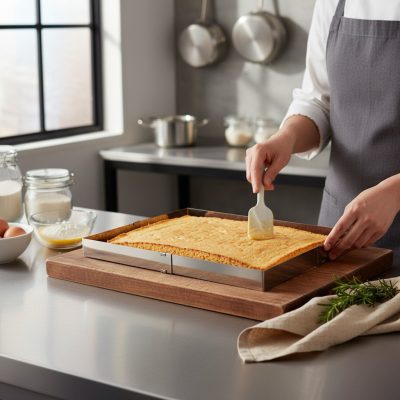 Ez az állítható, téglalap alakú, rozsdamentes acél tortaszalag egy kiváló minőségű és praktikus eszköz, amely tökéletes választás torták, sütemények és más desszertek készítéséhez. A szalag mérete könnyen állítható, így mindig a tökéletes formát kapja. A rozsdamentes acélból készült szalag tartós és hosszú élettartamú, és sütéshez és fagyasztáshoz is használható.
