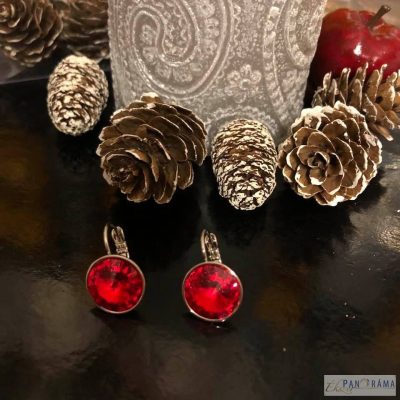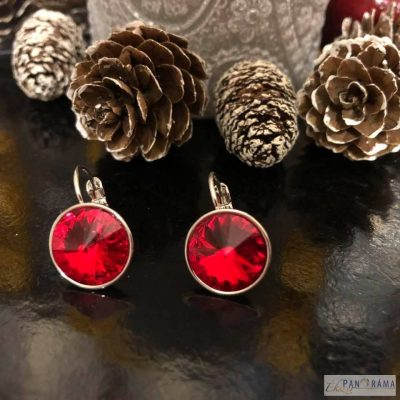 Swanis® kristályos antiallergén fülbevaló. Ezüst színben, piros színű kristállyal.