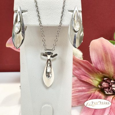 Eredeti kristállyal díszített ékszer szett, amihez eredeti kristály kapcsos fülbevaló, és nemesacél nyaklánc tartozik egy gyönyörű csepp alakú medállal!