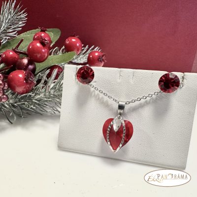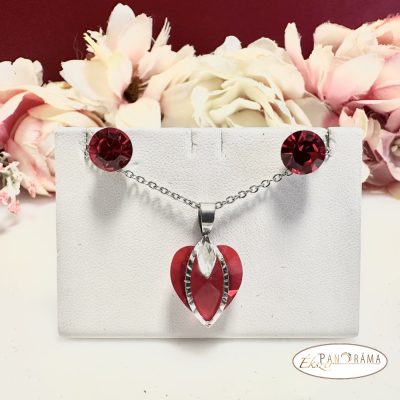 Eredeti kristállyal díszített ékszer szett, amihez eredeti kristály fülbevaló, és nemesacél nyaklánc tartozik egy gyönyörű szív medállal!
