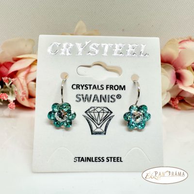 Gyönyörűen csillogó kristály virág fülbevaló, orvosi fém szerelékkel! Allergia esetén is viselhető!