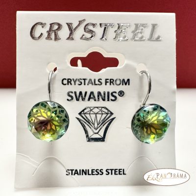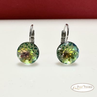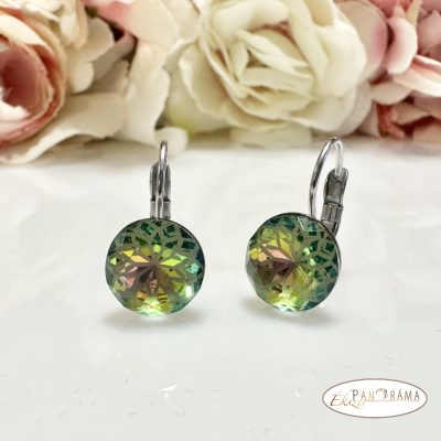 Swanis® francia kapcsos, különleges csiszolású fülbevaló, zöld színjátszó kristályos