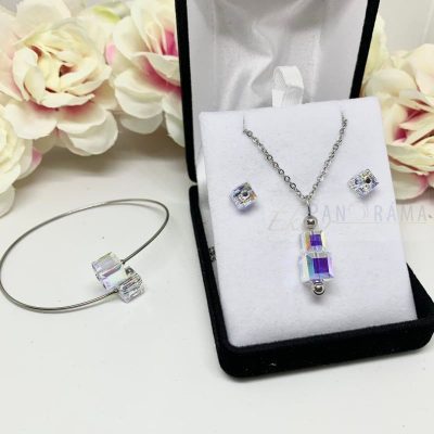 Swanis® kristályos fülbevaló és nyaklánc szett karkötővel díszdobozban