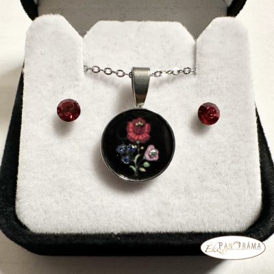 Swanis® kristályos, különleges magyaros mintázatú medállal, kristályokkal díszítve, hozzá illő beszúrós fülbevalóval.