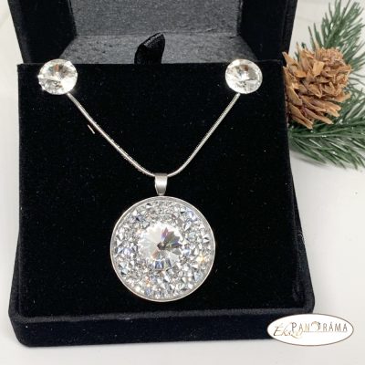 Káprázatos csillogás, kifinomult stílus és vagányság jellemzi ezt a gyönyörű swanis® kristályos medálos láncot és fülbevalót! A medál közepében lévő kristály 12 mm, amit több apró kristály ölel át! Orvosi acél alappal készülnek, a lánc 45-50 cm acél lánc.