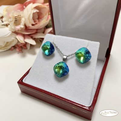 Káprázatos csillogás, elegancia és minimál stílus jellemzi ezt a gyönyörű swanis® kristályos medálos láncot és fülbevalót! A párna kristályok 12 mm , orvosi acél alappal készülnek.