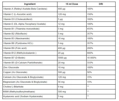 • MSM (metil-szulfonil-metán): 200 mg – Gyulladáscsökkentő, segíti a bőr és az ízületek egészségét.
