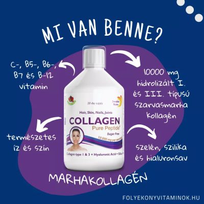 • 10000 mg hidrolizált I. és III. típusú szarvasmarha kollagén. Az I. és III. típusú kollagén különösen fontos a bőr rugalmassága szempontjából, segíti a ráncok minimalizálását.