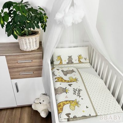 • Sweet Time bézs – 2 részes babaágynemű szett bébi vízilóval és zsiráffal, 100% pamut