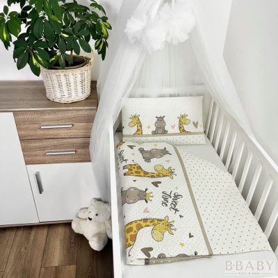 Sweet Time bézs – 2 részes babaágynemű szett bébi vízilóval és zsiráffal