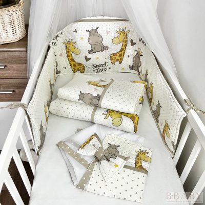 • Sweet Time bézs – boldog bébi zsiráf és víziló mintás 4 részes babaágynemű szett