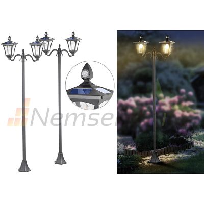 A 186 cm-es magasságú kerti lámpa ideális bejárat számára. A kerti utak optimálisan meg vannak világítva. A nap folyamán fényei klasszikus eleganciával ragyognak a retro stílusú utcai lámpaként.