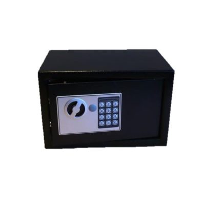 Masszív acélszerkezetű széf. Elektromos zár, vésznyitó kulcs segítségével nyitás, amennyiben lemerül az elem. Rögzítő furatok 2-2. Fényes fekete színben