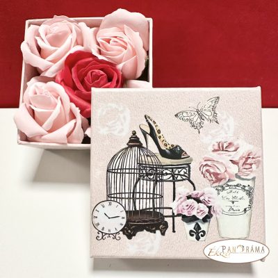 Vintage díszdobozban 5 db 5x7 cm-es csodás illatú szappan rózsa