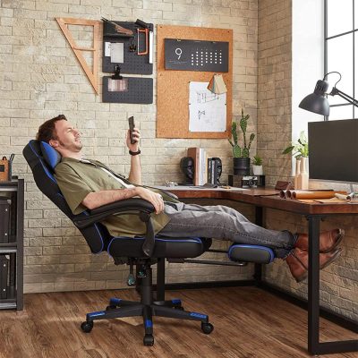 • Végtelen kényelem: Ez a hátrafelé állítható játékszék derékpárnával, lábtartóval, párnával és csendes kerekekkel rendelkezik, így a tested ellazulhat, amikor összpontosítasz – kényelmes luxus a dolgozószobádhoz.