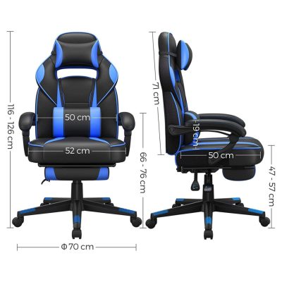 Songmics gamer szék, asztali szék lábtartóval, irodai szék fejtámlával és derékpárnával, állítható magasságú, ergonomikus, 90-135°-os dőlésszög, 150 kg-os teherbírás