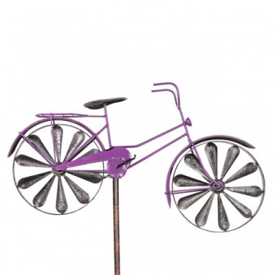 Szélkerék retro hatású lila bicikli szélforgó dísz játék földbe szúrható kerti dekoráció antik hatású