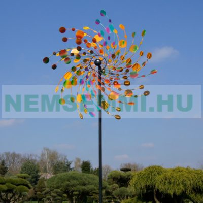 Szélkerék színes 76 cm átmérőjű szélforgó dísz játék földbe szúrható színes kerti dekoráció
