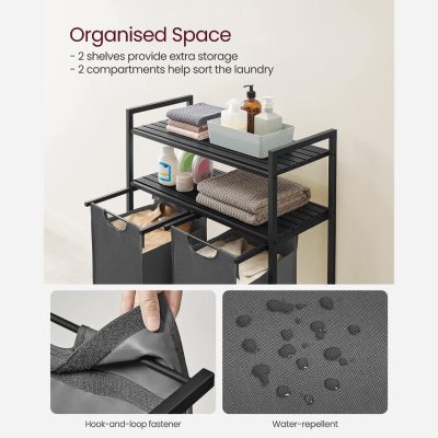 Szennyeskosár 2 rekeszes, szennyestartó 2 polccal, fekete