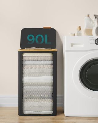 • [Tágas] Ez a 90L-es szennyestartó, amely 42 x 32 x 70,5 cm méretű, bőséges helyet kínál egy személy egyheti szennyesének, így megkönnyíti a mosási teendőket.