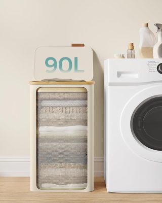• [Tágas kialakítás] Ez a 90L-es szennyestartó, amely 42 x 32 x 70,5 cm méretű, elegendő helyet biztosít egy személy körülbelül egy heti szennyesének, megkönnyítve a mosási rutint.