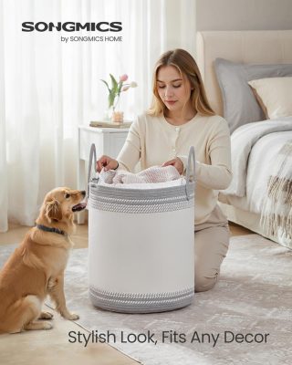 • 【PRAKTIKUS RÉSZLETEK】A nyílásnál található húzózsinór védi a ruhákat a portól, és megakadályozza, hogy véletlenül kiessenek – a magánszféráját is óvja. A fogantyúk pedig megkönnyítik a kosár szállítását.