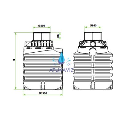 A szennyvízátemelő akna 1500mm átmérőjű, magassága (H) 2000mm.