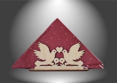 A galamb mintás, lézervágott fa szalvétatartó tökéletes harmóniát teremt az esküvői asztalon. A galamb a béke, tisztaság és szeretet szimbóluma, így különleges jelentéssel bír az ifjú pár számára. Finoman kidolgozott, egyedi kivágással készült darab, amely egyszerre funkcionális és esztétikus. Kiváló minőségű faanyagból készül, precíz lézervágással, kézi utómunkával. Letisztult stílusa illik rusztikus, vintage és modern esküvői hangulathoz is. Kiemelkedő választás, ha a részletek is számítanak.