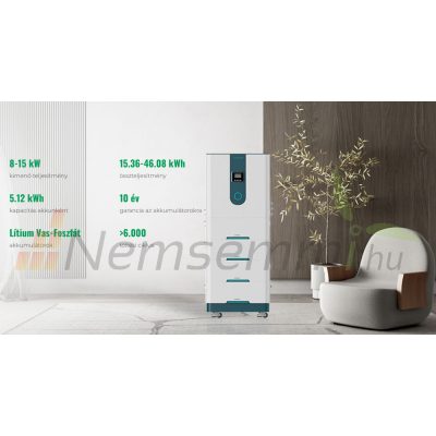 • Szigetüzemű rendszerhez energia tároló 25 kWh akkumulátor + 3 fázisú 8 kW inverter + töltés vezérlő csomag Lenercom LC-E2-825T