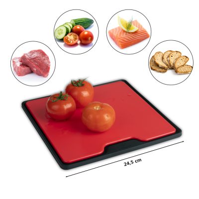 A deszka méretei nagyon praktikusak és kényelmesek, így a konyhapulton vagy a konyhai asztalon könnyen elfér. Az eszközön van egy beépített vágófelület, amely kiváló segítséget nyújt a vágáshoz, és megvédi az élelmiszereket a károsodástól.
