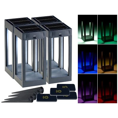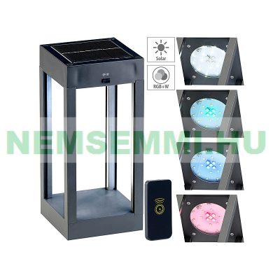 • Színes kültéri szolárlámpa 4 darab RGB + W LED-ek, távirányítóval 80 lm 1 W