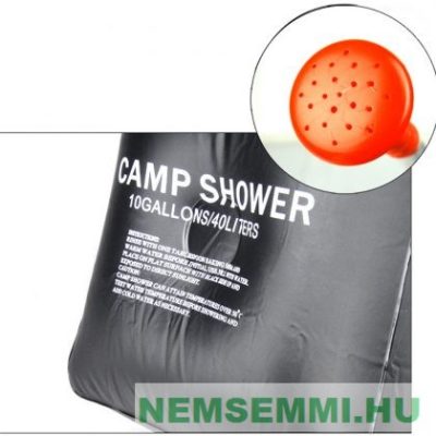 40 literes űrtartalma van. Egyszerűen csak töltsd fel vízzel, majd akaszd ki a tartályt a napra! Speciális színe és anyaga van, így néhány órán belül kellemes, meleg vízzel zuhanyozhatsz a gallonon található zuhanyrózsán keresztül.