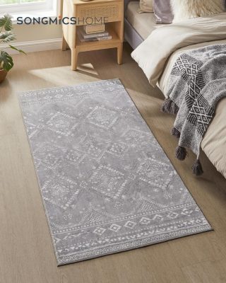 • Szőnyeg, 80 x 150 cm-es hálószoba szőnyeg, mosógépben mosható, boho stílusú, szürke