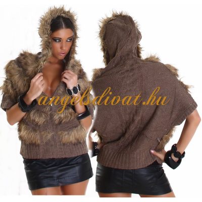 SZŐRME DÍSZES BARNA RÖVID KABÁT