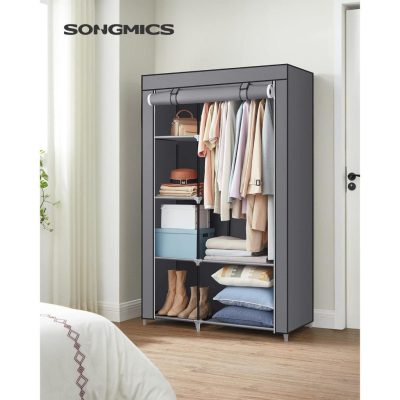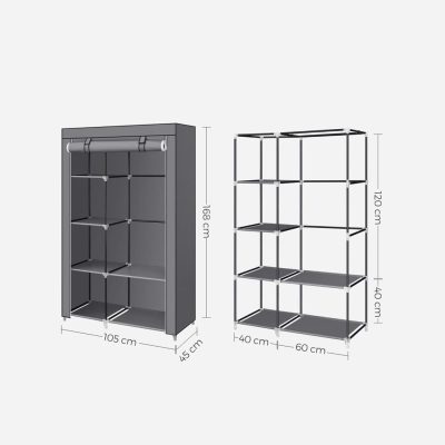 RYG085G02 Szövet szekrény 6 polcos Különféle összeszerelési lehetőségek 105 x 45 x 168 cm hálószoba öltözőhöz szürke