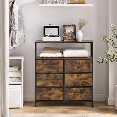 • Tárolási megoldásokat kínál: Helyhiány takarítás közben?Ez a tágas komód 6 szövetfiókkal és 2 polccal segít az olyan tárgyak rendezésében, mint a könyvek, gyermekjátékok és ruhák.
