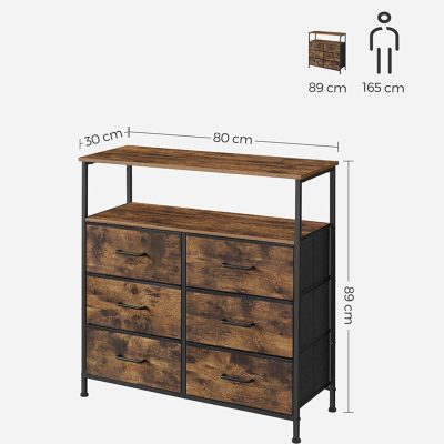 Szövetfiókos komód, fiókos szekrény 80 x 89 x 30 cm, rusztikus barna