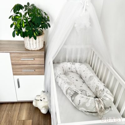 Szürke Álom Elefánt – Babafészek újszülötteknek | Elefántos, szürke, 100% pamut, antiallergén, mosható
