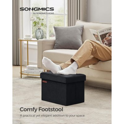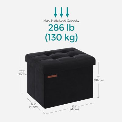 kis Tároló puff tároló oszmán, összecsukható bársony tárolódoboz, tárolóláda, lábtámasz, 31x41x31 cm ,130 kg -ig terhelhetőség, nappaliba, hálószobába, hálóterembe, fekete: