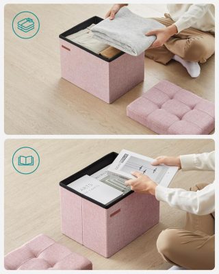 • Tároló puff, összecsukható vászon tárolódoboz, pasztell rózsaszín, 31 x 41 x 31 cm