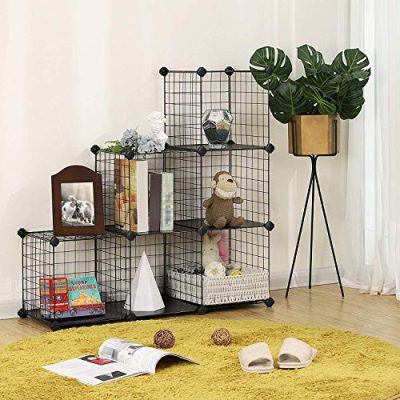 6-kocka drótrácsos tárolóállvány, reteszelő polcos egység fémhálós polcokkal és PP műanyag lapokkal, könyvek, cipők, ruhadarabok, szerszámok, a nappaliban, fürdőszoba, fekete