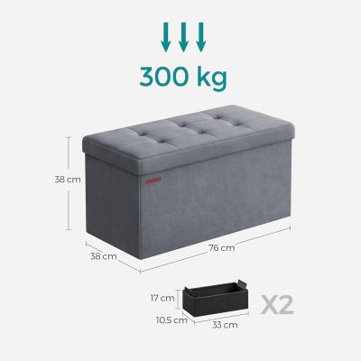 • [Bőséges tárolóhely] A 38 x 76 x 38 cm-es méretű pad 89 literes kapacitást kínál könyvek, takarók és egyéb dolgok tárolására. Tartalmaz még 2 tárolódobozt zokni, fehérnemű és egyéb apróságok tárolására