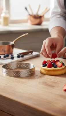 A perforált tart karika sütőben használható, és a professzionális cukrászműhelyek egyik leggyakrabban használt eszköze a ropogós tart alapok készítéséhez.