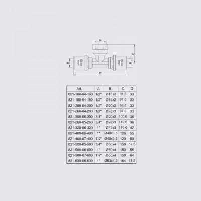 • TE-SA press T-idom belső menetes ággal 20x2 - 1/2"B - 20x2 mm