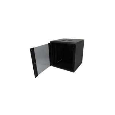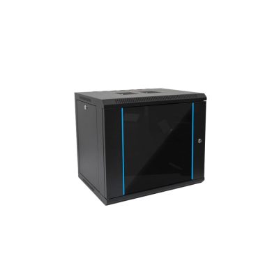 Techson 9U fali 19″ rackszekrény – hegesztett acél, zárható üvegajtó, levehető oldalfalak, 60 kg teherbírás, aktív hűtés előkészítéssel